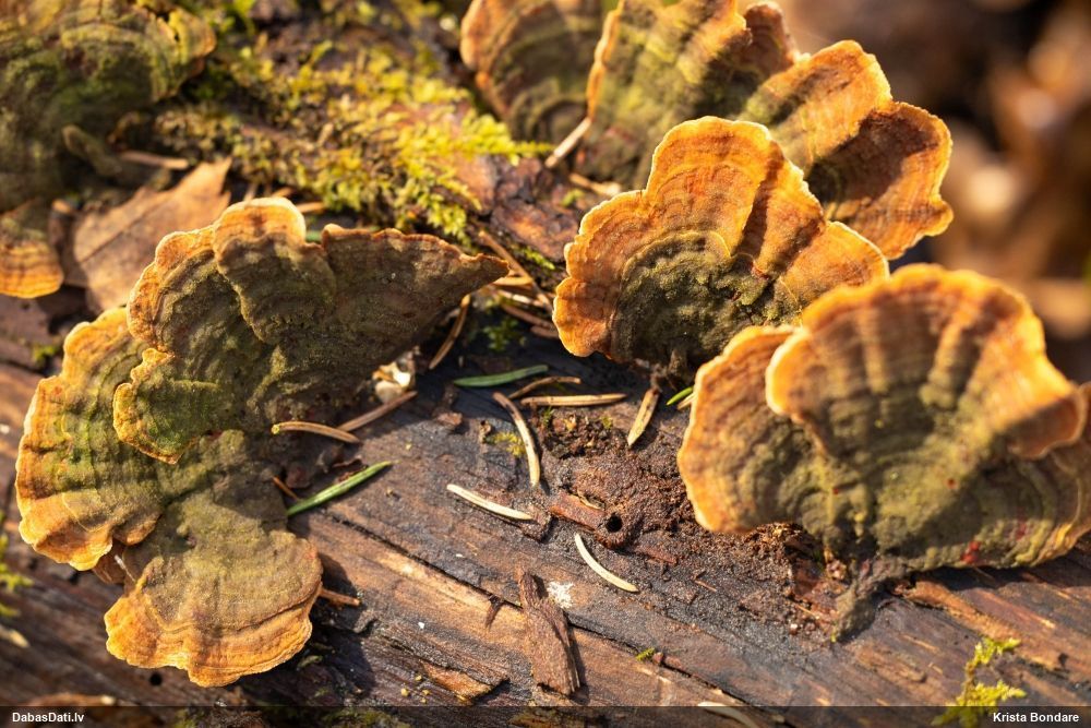 Satrūdējusi kritala mežā, nav dēļi. Iespējams, egle, jauktu koku mežs.