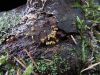 Man pēkšņi radās ideja - vai tur bija nu ļoti mitrs mikroklimats, egle ar melnalksni? Hipotētiski tādas dzeltenas var būt Diachea muscorum. Te bilde ir mazliet līdzīga: https://fr.wikipedia.org/wiki/Fichier:Craterium_muscorum,_Trawscoed,_North_Wales,_Aug_2016_-_Flickr_-_janetgraham84.jpg
