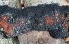 Šobrīd varu iedomāties 2 variantus - melnā plaispika Amaurochaete atra vai parastais gļotpūpēdis Reticularia lycoperdon. Pēc izmēra, augšanas laika un augšanas uz apstrādāta koka atbilst abas.