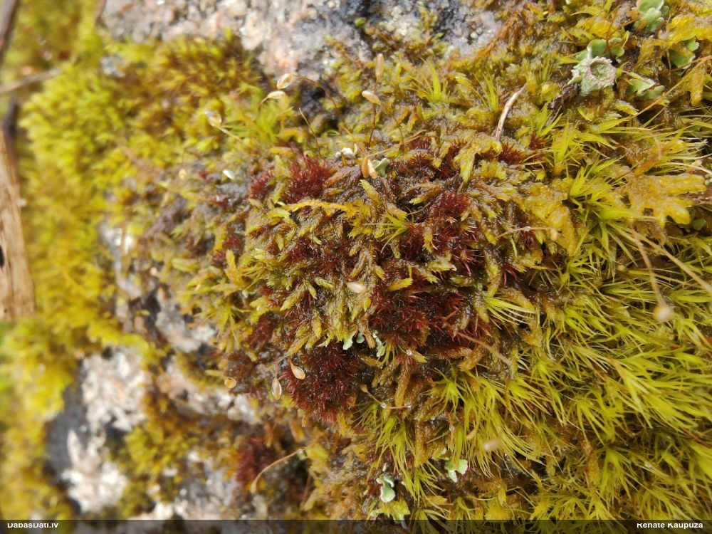 Paldies, Raivo! Ar acu gaišumu man arvien sliktāk, bet mikroskops palīdz. Jā, gribēju teikt, ka paraugam, ja vien nav kāda jutīga atradne, kurai drīkst ievākt tikai mazu gabaliņu, vērts ievākt lielāku gabalu, jo gļotsēnēm patīk kompānija. Un mikroskopa mazajos palielinājumos ar sānu papildus apgaismojumu ir vērts rūpīgi "izstaigāt" visu paraugu. Arī ķērpjus un interesantas sīksēnītes tā var atrast, ko dabā nepamanītu. Ar kriksītēm ir dažādi - pirmās es tā arī tikai citu sugu paraugos pamanīju, bet vēlāk redzēju arī dabā kriskīšu plantācijas - ja to ir daudz, tad var pamanīt jau dabā. Uz sūnām gan ir ekstrēms gadījums, dabā droši nepamanītu, arī eksemplāra noņemšana no sūnas nebija pārāk veiksmīga, tāpēc par noteikšanu mazliet šaubos (sporām mazliet cits tonis). Bet pagaidām citas hipotēzes nav (un konkrētā eksemplāra arī vairs ne).
