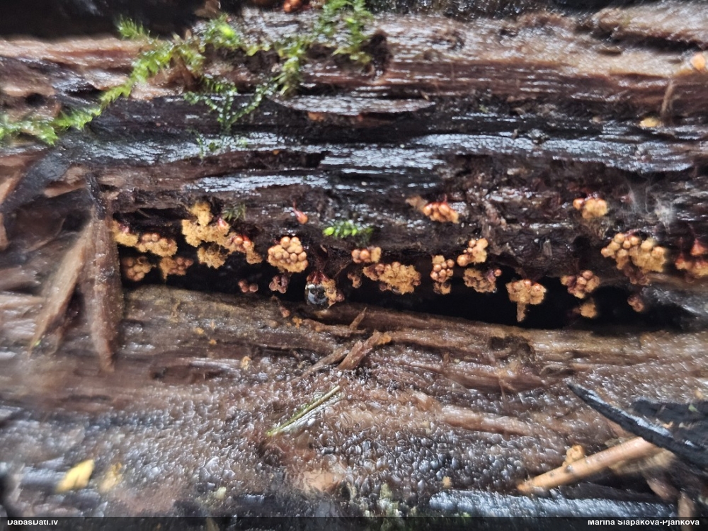 Nu vai tad šis nav Sorocybe resinae micēlijs, uz kura mēdz augt gļotsēne?
