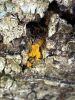 Man pēkšņi radās ideja - vai tur bija nu ļoti mitrs mikroklimats, egle ar melnalksni? Hipotētiski tādas dzeltenas var būt Diachea muscorum. Te bilde ir mazliet līdzīga: https://fr.wikipedia.org/wiki/Fichier:Craterium_muscorum,_Trawscoed,_North_Wales,_Aug_2016_-_Flickr_-_janetgraham84.jpg