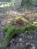 Satrūdējusi kritala mežā, nav dēļi. Iespējams, egle, jauktu koku mežs.