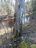 Satrūdējusi kritala mežā, nav dēļi. Iespējams, egle, jauktu koku mežs.