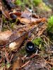 Satrūdējusi kritala mežā, nav dēļi. Iespējams, egle, jauktu koku mežs.