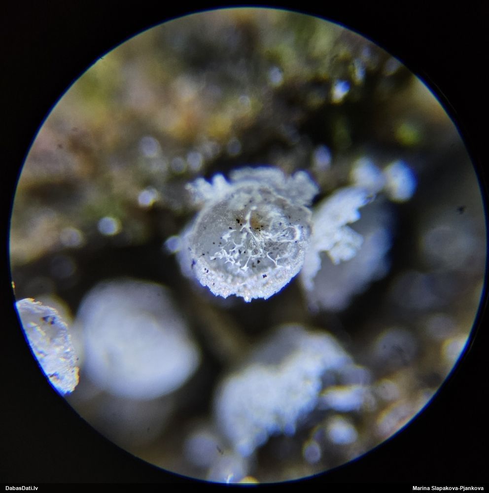 Šis man pašai sanāca pārsteigums. Ievācu paraugu ar domu "varbūt tur ir gļotsēne", dodot varbūtību apmēram pusprocentu, ka ir. Bet no mikroskopijas starp galīgi vecām sporām izdevās atrast ne tikai dažas labas, bet, galvenais, arī perfektus kapilīcija fragmentus, no kura suga, vēl kopā ar sporu pazīmēm, nosakāma nešaubīgi.