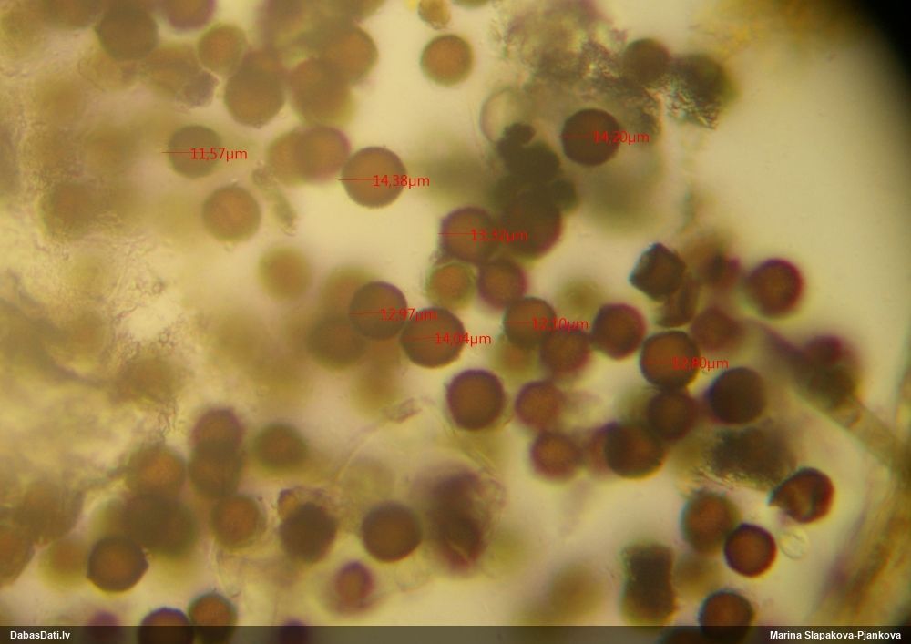 Šis man pašai sanāca pārsteigums. Ievācu paraugu ar domu "varbūt tur ir gļotsēne", dodot varbūtību apmēram pusprocentu, ka ir. Bet no mikroskopijas starp galīgi vecām sporām izdevās atrast ne tikai dažas labas, bet, galvenais, arī perfektus kapilīcija fragmentus, no kura suga, vēl kopā ar sporu pazīmēm, nosakāma nešaubīgi.