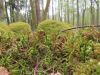 Man pēkšņi radās ideja - vai tur bija nu ļoti mitrs mikroklimats, egle ar melnalksni? Hipotētiski tādas dzeltenas var būt Diachea muscorum. Te bilde ir mazliet līdzīga: https://fr.wikipedia.org/wiki/Fichier:Craterium_muscorum,_Trawscoed,_North_Wales,_Aug_2016_-_Flickr_-_janetgraham84.jpg