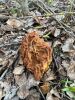 Satrūdējusi kritala mežā, nav dēļi. Iespējams, egle, jauktu koku mežs.