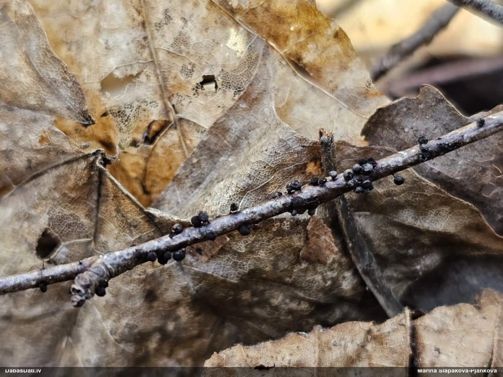 Paldies, Raivo! Ar acu gaišumu man arvien sliktāk, bet mikroskops palīdz. Jā, gribēju teikt, ka paraugam, ja vien nav kāda jutīga atradne, kurai drīkst ievākt tikai mazu gabaliņu, vērts ievākt lielāku gabalu, jo gļotsēnēm patīk kompānija. Un mikroskopa mazajos palielinājumos ar sānu papildus apgaismojumu ir vērts rūpīgi "izstaigāt" visu paraugu. Arī ķērpjus un interesantas sīksēnītes tā var atrast, ko dabā nepamanītu. Ar kriksītēm ir dažādi - pirmās es tā arī tikai citu sugu paraugos pamanīju, bet vēlāk redzēju arī dabā kriskīšu plantācijas - ja to ir daudz, tad var pamanīt jau dabā. Uz sūnām gan ir ekstrēms gadījums, dabā droši nepamanītu, arī eksemplāra noņemšana no sūnas nebija pārāk veiksmīga, tāpēc par noteikšanu mazliet šaubos (sporām mazliet cits tonis). Bet pagaidām citas hipotēzes nav (un konkrētā eksemplāra arī vairs ne).
