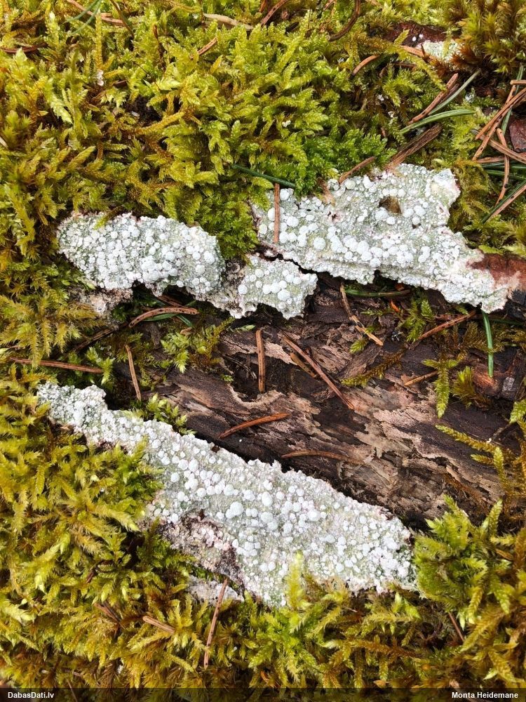 Raivo, nebūs Chaenotheca furfuracea, bet gan C.brachypoda (dabisku mežu indikatorsuga). C.furfuracea ir ar izteiktu laponi, daudz lielāki aķ un košāk zaļa krāsa