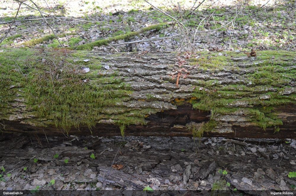 Satrūdējusi kritala mežā, nav dēļi. Iespējams, egle, jauktu koku mežs.