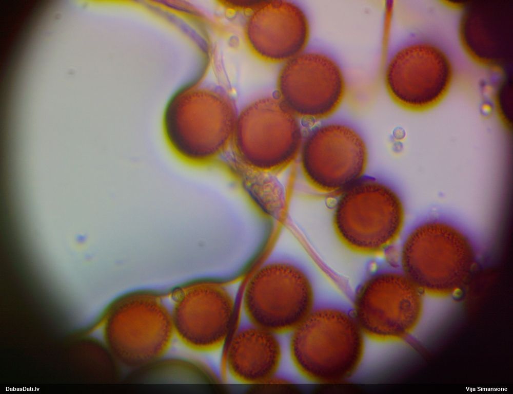 Tai vajadzētu būt B.panicea, vajadzēja vismaz vienā foto fokusu uz sporu virsmas rakstu, jo sporām jābūt ar tumšāku kārpu grupām. Te tās neredz.