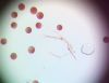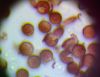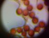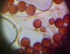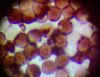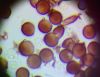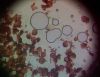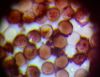 Un ja ir Badhamia, tad vajag arī uz stikliņa bez virsstikliņa mazos palielinājumos (lai nesaslapina okulāru) paskatīties, vai sporas negrupējas, pa divi vai vairāk. Te sporas izskatās ļoti apaļas, drīzāk negrupējas, bet paskatīties tāpat ir vērts.