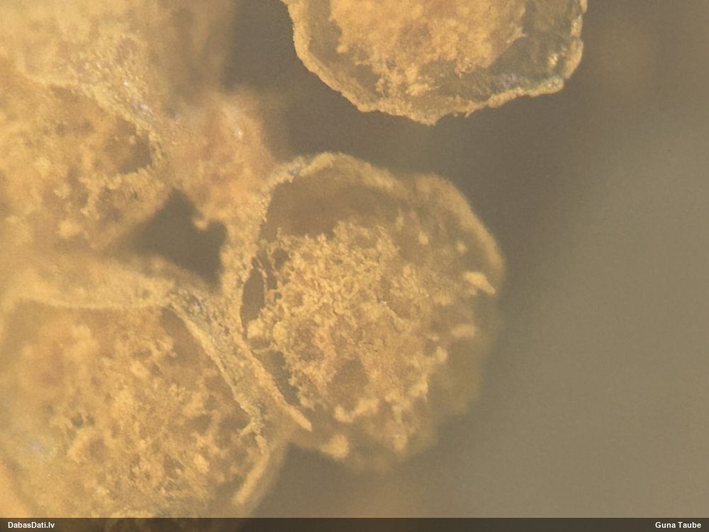 Paldies, Raivo! Ar acu gaišumu man arvien sliktāk, bet mikroskops palīdz. Jā, gribēju teikt, ka paraugam, ja vien nav kāda jutīga atradne, kurai drīkst ievākt tikai mazu gabaliņu, vērts ievākt lielāku gabalu, jo gļotsēnēm patīk kompānija. Un mikroskopa mazajos palielinājumos ar sānu papildus apgaismojumu ir vērts rūpīgi "izstaigāt" visu paraugu. Arī ķērpjus un interesantas sīksēnītes tā var atrast, ko dabā nepamanītu. Ar kriksītēm ir dažādi - pirmās es tā arī tikai citu sugu paraugos pamanīju, bet vēlāk redzēju arī dabā kriskīšu plantācijas - ja to ir daudz, tad var pamanīt jau dabā. Uz sūnām gan ir ekstrēms gadījums, dabā droši nepamanītu, arī eksemplāra noņemšana no sūnas nebija pārāk veiksmīga, tāpēc par noteikšanu mazliet šaubos (sporām mazliet cits tonis). Bet pagaidām citas hipotēzes nav (un konkrētā eksemplāra arī vairs ne).