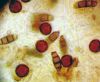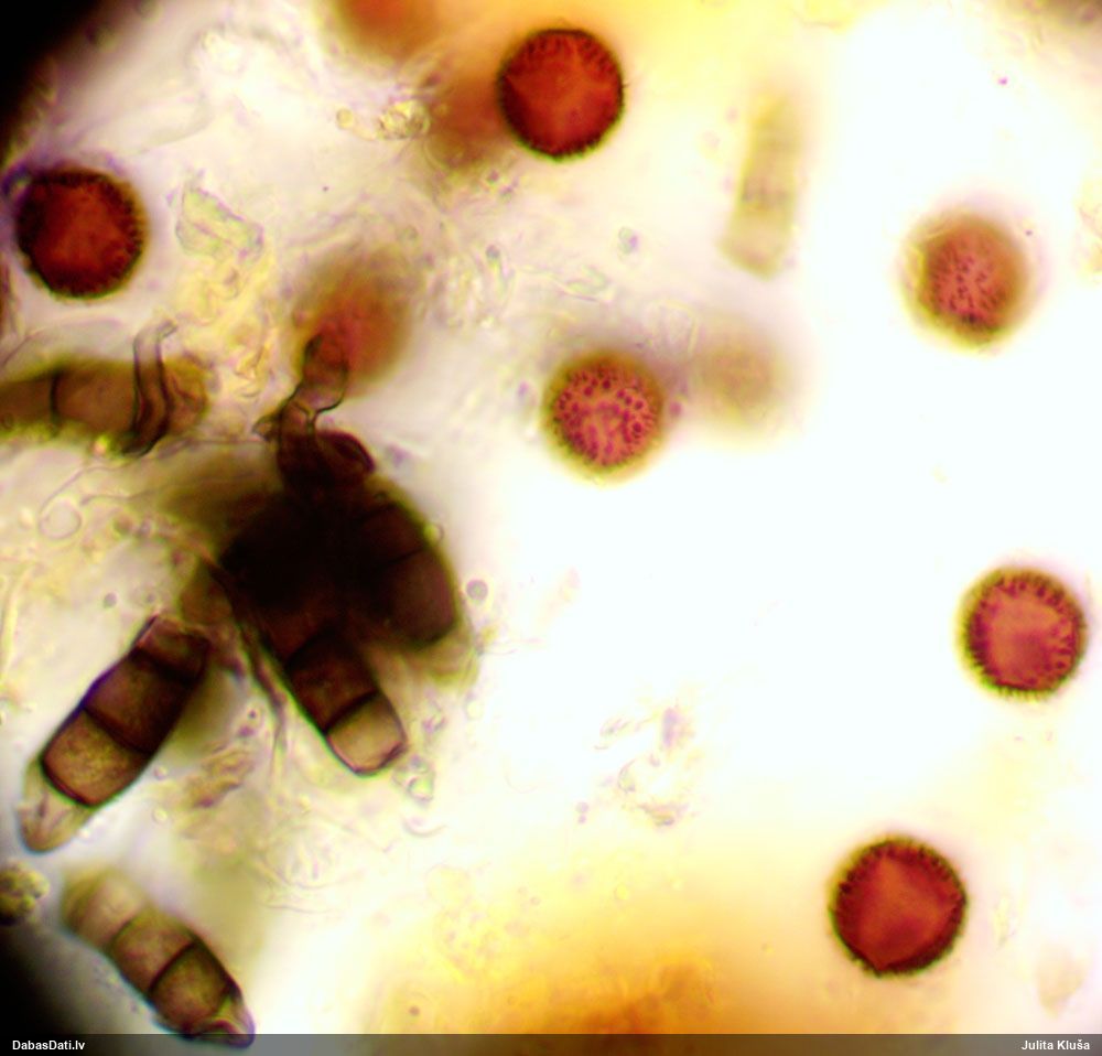 Sporas izskatās ļoti gaišas, varbūt nenobriedušas. Es laikam pēc kāda laiciņa mēģinātu vēlreiz mikroskopēt. Tajā pašā laikā sporu izmēri priekš T.contorta ir pamazi (ja tipiski ir 11-14 mkm, te ir knapi 11 mkm)