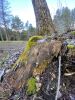 Satrūdējusi kritala mežā, nav dēļi. Iespējams, egle, jauktu koku mežs.