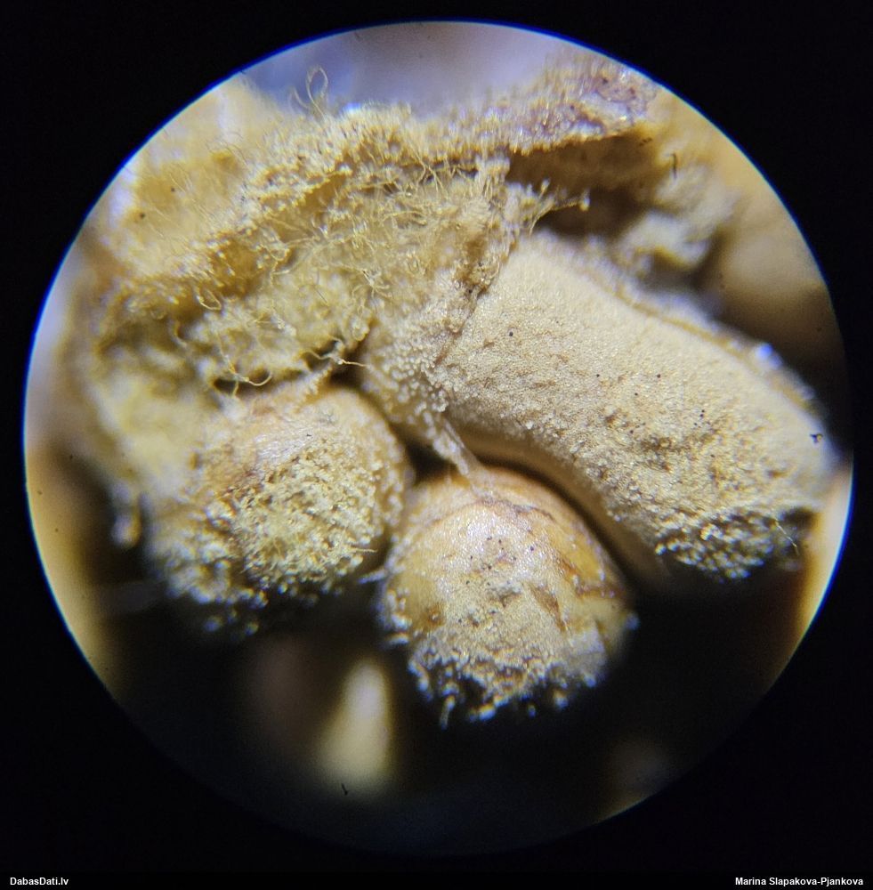 Paraudziņa nodošanas ātruma cena. Šis man nedeva mieru, jo sarežģīta (reta) suga bija noteikta tikai no ārējām pazīmēm. Un nemieram bija pamats - iekšējās pazīmes parādīja to, ko ārējās nevarēja (un no foto vien tāpat jaunu sugu neapstiprinātu). 2021. gadā bija pasaulē retās Diderma subviridifuscum uzlidojums. Pirmais pie manis nonāca Astras Kalves paraugs, no kura tika noteikta jauna suga LV, kuru Astra novēroja 8. oktobrī. Tad pie manis nonāca Ausmas Pirogas paraugs, kas bija novērots agrāk - 12. septembrī. Un tikai tagad man nonāca Tavs paraugs, kas bija novērots tā paša 2021. gada 7. septembrī - visagrāk no visiem trim, bet visvēlāk pie manis. Būtu uzreiz man nodevusi, būtu sugas atklājēja ;)