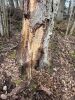 Satrūdējusi kritala mežā, nav dēļi. Iespējams, egle, jauktu koku mežs.
