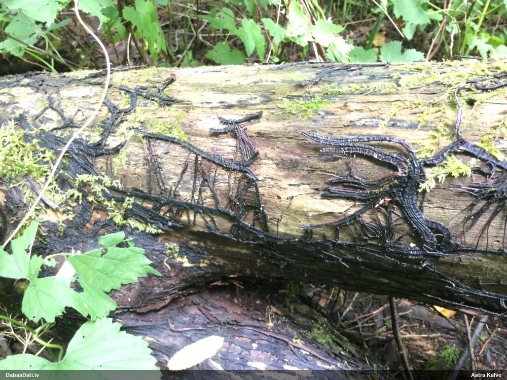Domāju to Sorocybe resinae, ja tā, tad esmu soli tuvāk mērķim, nu zinu, kā izskatās un kur meklēt. Gļotsēnītes klāt gan nebija.
