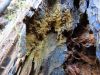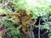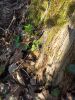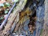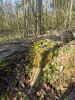 Satrūdējusi kritala mežā, nav dēļi. Iespējams, egle, jauktu koku mežs.