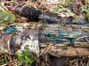 Satrūdējusi kritala mežā, nav dēļi. Iespējams, egle, jauktu koku mežs.
