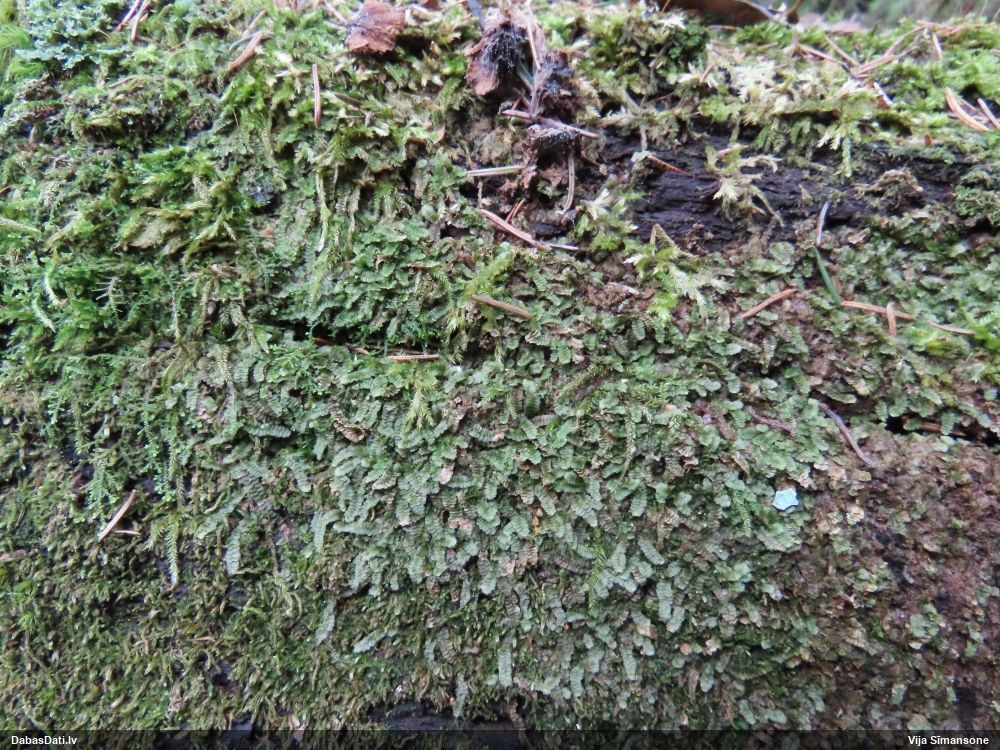 Paldies, Raivo! Ar acu gaišumu man arvien sliktāk, bet mikroskops palīdz. Jā, gribēju teikt, ka paraugam, ja vien nav kāda jutīga atradne, kurai drīkst ievākt tikai mazu gabaliņu, vērts ievākt lielāku gabalu, jo gļotsēnēm patīk kompānija. Un mikroskopa mazajos palielinājumos ar sānu papildus apgaismojumu ir vērts rūpīgi "izstaigāt" visu paraugu. Arī ķērpjus un interesantas sīksēnītes tā var atrast, ko dabā nepamanītu. Ar kriksītēm ir dažādi - pirmās es tā arī tikai citu sugu paraugos pamanīju, bet vēlāk redzēju arī dabā kriskīšu plantācijas - ja to ir daudz, tad var pamanīt jau dabā. Uz sūnām gan ir ekstrēms gadījums, dabā droši nepamanītu, arī eksemplāra noņemšana no sūnas nebija pārāk veiksmīga, tāpēc par noteikšanu mazliet šaubos (sporām mazliet cits tonis). Bet pagaidām citas hipotēzes nav (un konkrētā eksemplāra arī vairs ne).