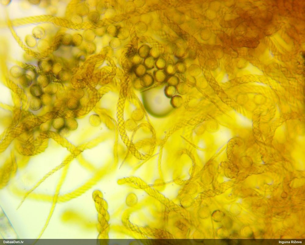 Sporas izskatās ļoti gaišas, varbūt nenobriedušas. Es laikam pēc kāda laiciņa mēģinātu vēlreiz mikroskopēt. Tajā pašā laikā sporu izmēri priekš T.contorta ir pamazi (ja tipiski ir 11-14 mkm, te ir knapi 11 mkm)