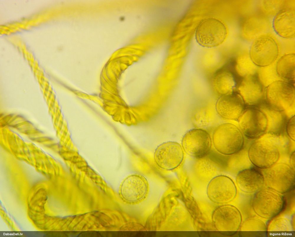 Sporas izskatās ļoti gaišas, varbūt nenobriedušas. Es laikam pēc kāda laiciņa mēģinātu vēlreiz mikroskopēt. Tajā pašā laikā sporu izmēri priekš T.contorta ir pamazi (ja tipiski ir 11-14 mkm, te ir knapi 11 mkm)