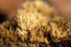 Man pēkšņi radās ideja - vai tur bija nu ļoti mitrs mikroklimats, egle ar melnalksni? Hipotētiski tādas dzeltenas var būt Diachea muscorum. Te bilde ir mazliet līdzīga: https://fr.wikipedia.org/wiki/Fichier:Craterium_muscorum,_Trawscoed,_North_Wales,_Aug_2016_-_Flickr_-_janetgraham84.jpg