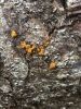 Man pēkšņi radās ideja - vai tur bija nu ļoti mitrs mikroklimats, egle ar melnalksni? Hipotētiski tādas dzeltenas var būt Diachea muscorum. Te bilde ir mazliet līdzīga: https://fr.wikipedia.org/wiki/Fichier:Craterium_muscorum,_Trawscoed,_North_Wales,_Aug_2016_-_Flickr_-_janetgraham84.jpg