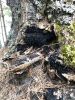 Satrūdējusi kritala mežā, nav dēļi. Iespējams, egle, jauktu koku mežs.