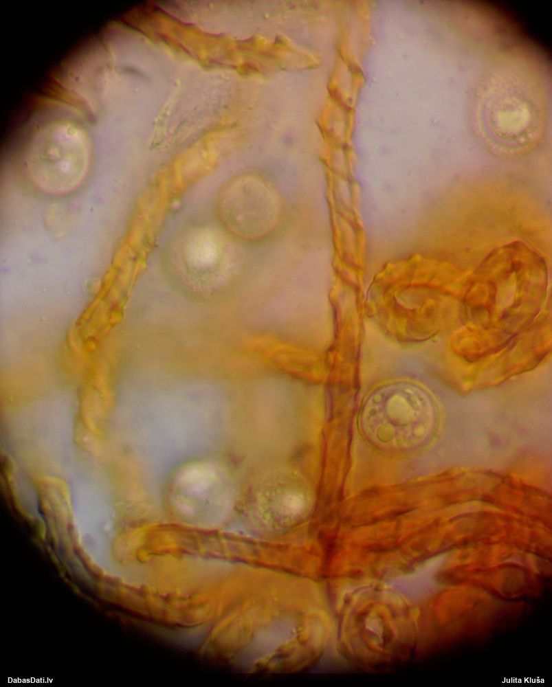 Šis man pašai sanāca pārsteigums. Ievācu paraugu ar domu "varbūt tur ir gļotsēne", dodot varbūtību apmēram pusprocentu, ka ir. Bet no mikroskopijas starp galīgi vecām sporām izdevās atrast ne tikai dažas labas, bet, galvenais, arī perfektus kapilīcija fragmentus, no kura suga, vēl kopā ar sporu pazīmēm, nosakāma nešaubīgi.