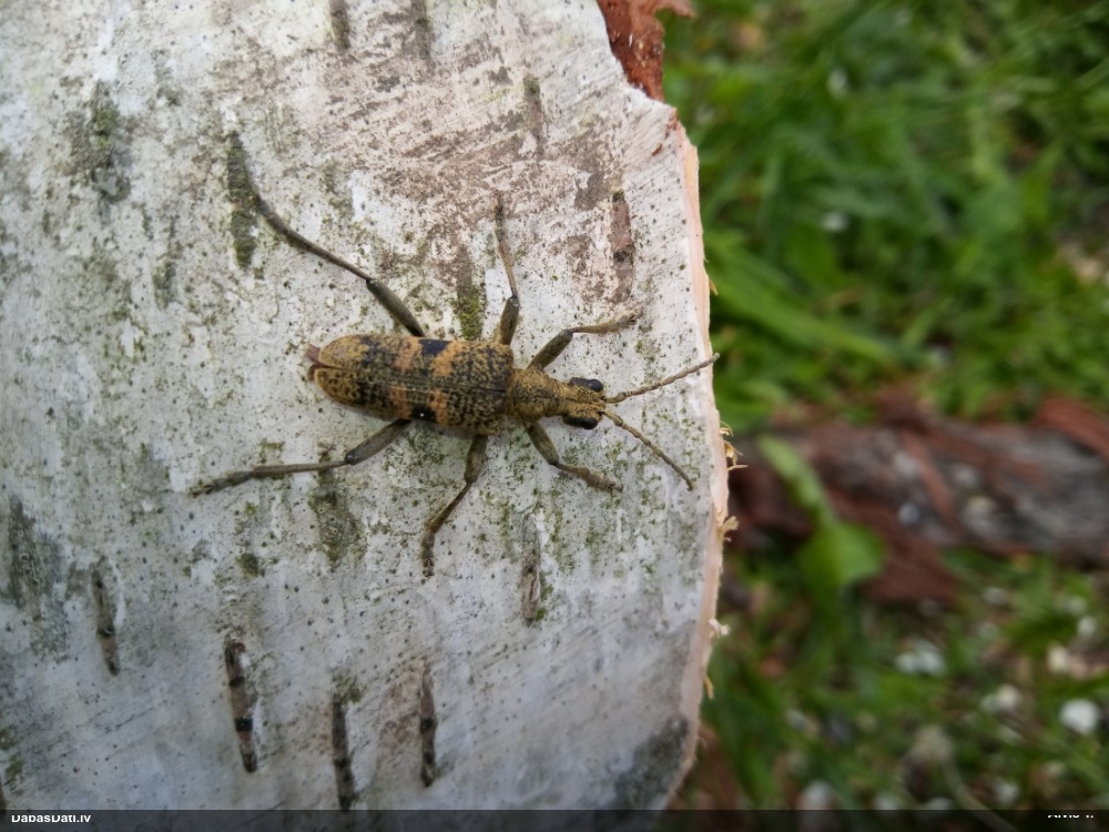 Jāredz tuvāk (kaut vai izkadrēts šis pats attēls) - varbūt tumšā eļļasvabole (Meloe proscarabaeus)