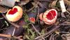 Man pēkšņi radās ideja - vai tur bija nu ļoti mitrs mikroklimats, egle ar melnalksni? Hipotētiski tādas dzeltenas var būt Diachea muscorum. Te bilde ir mazliet līdzīga: https://fr.wikipedia.org/wiki/Fichier:Craterium_muscorum,_Trawscoed,_North_Wales,_Aug_2016_-_Flickr_-_janetgraham84.jpg