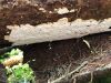 Satrūdējusi kritala mežā, nav dēļi. Iespējams, egle, jauktu koku mežs.