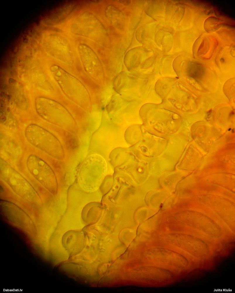 Šis man pašai sanāca pārsteigums. Ievācu paraugu ar domu "varbūt tur ir gļotsēne", dodot varbūtību apmēram pusprocentu, ka ir. Bet no mikroskopijas starp galīgi vecām sporām izdevās atrast ne tikai dažas labas, bet, galvenais, arī perfektus kapilīcija fragmentus, no kura suga, vēl kopā ar sporu pazīmēm, nosakāma nešaubīgi.