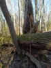 Satrūdējusi kritala mežā, nav dēļi. Iespējams, egle, jauktu koku mežs.