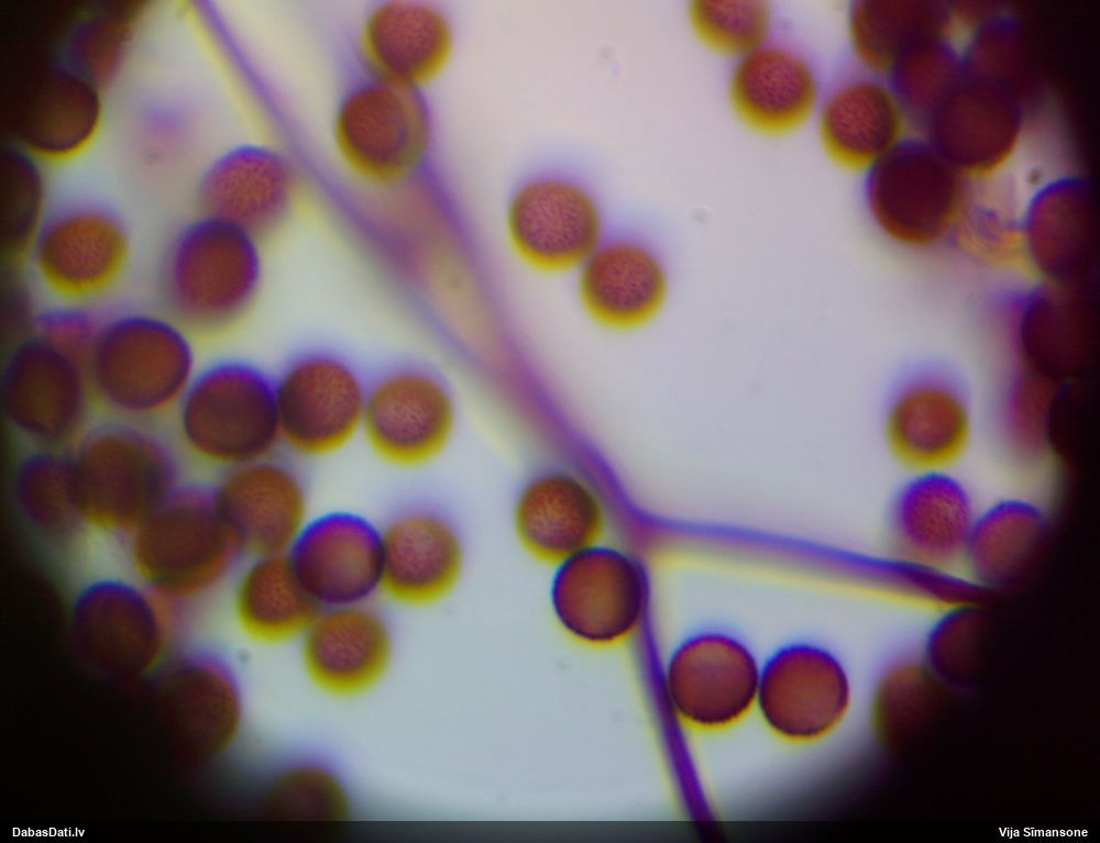 Sporas izskatās ļoti gaišas, varbūt nenobriedušas. Es laikam pēc kāda laiciņa mēģinātu vēlreiz mikroskopēt. Tajā pašā laikā sporu izmēri priekš T.contorta ir pamazi (ja tipiski ir 11-14 mkm, te ir knapi 11 mkm)