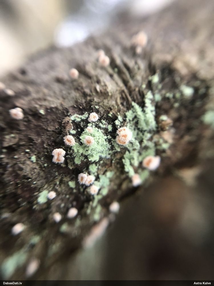 Raivo, nebūs Chaenotheca furfuracea, bet gan C.brachypoda (dabisku mežu indikatorsuga). C.furfuracea ir ar izteiktu laponi, daudz lielāki aķ un košāk zaļa krāsa