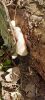 Satrūdējusi kritala mežā, nav dēļi. Iespējams, egle, jauktu koku mežs.