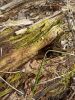 Satrūdējusi kritala mežā, nav dēļi. Iespējams, egle, jauktu koku mežs.