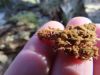 Vai tik nebūs medainā bumbulīte? Augļķermeņi vertikāli izstiepti, sporu mākonis ciešā klājienā.