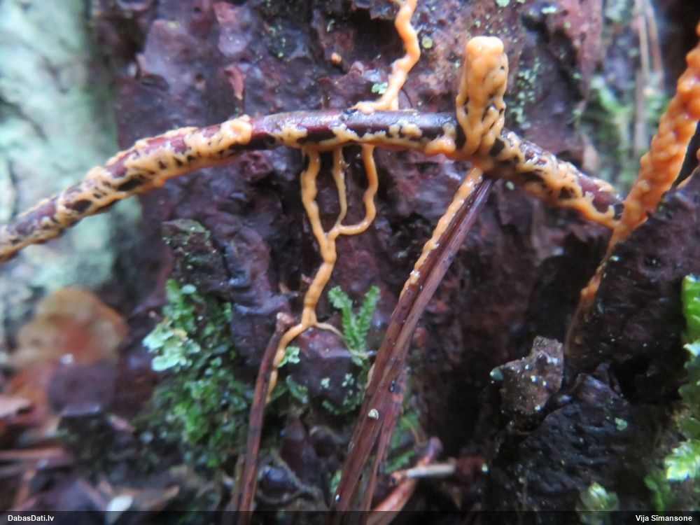 Liels paldies par paraugu! Mikroskopēju, viss kārtībā, kapilīcijs ir un suga pareiza. :) Un kā jau ir gadījies - tikko saņemu un apskatu paraugu, tā uzreiz ekspedīcijā izdodas atrast arī pašai (1 gab. augļķermeni :D). Ir pilnīgi droši, Raivo, bez Tava atraduma es arī nebūtu atradusi, jo uzmanību pievērsu, ka egle bija tieši tāda pati - slīpa un melna, tāpēc īpašs paldies par biotopa un substrāta bildēm! Kad ieraudzīju koka atbilstību, tad meklēju, kamēr atradu. :)