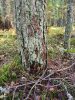 Satrūdējusi kritala mežā, nav dēļi. Iespējams, egle, jauktu koku mežs.