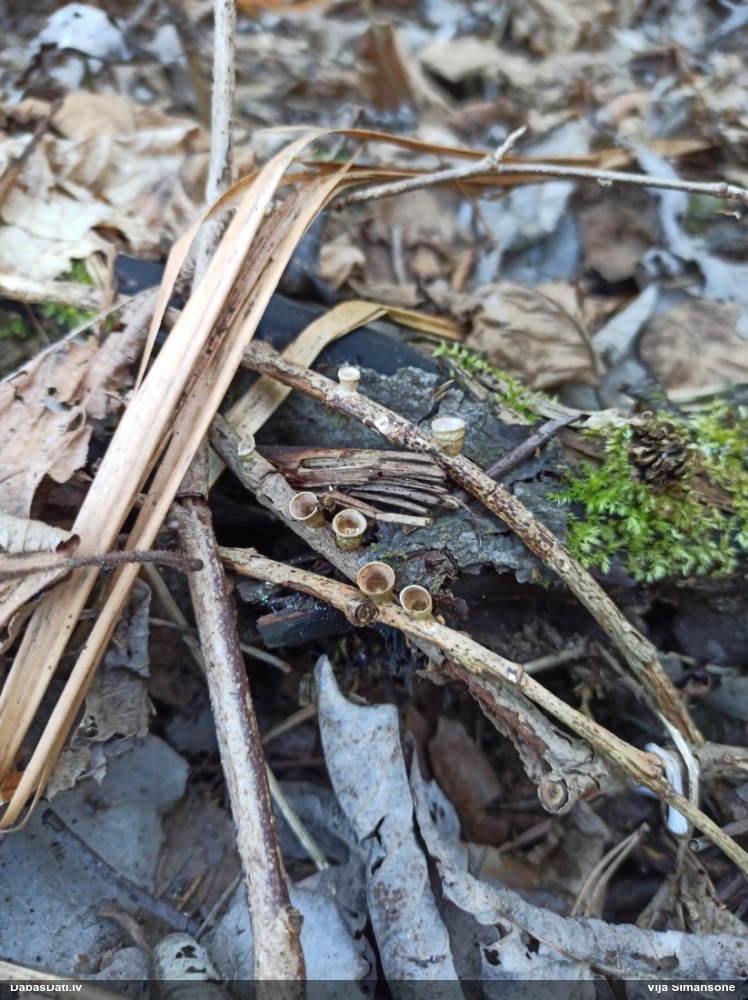 Pieņemot, ka uz egļu sveķainām rētām, tad Sarea difformis (Fr.) Fr. . Protams, vislabāk šādus būtu noteikt balstoties uz mikro pazīmēm.