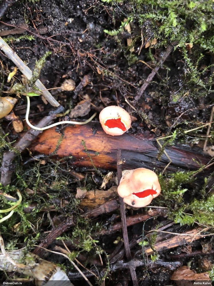 Man pēkšņi radās ideja - vai tur bija nu ļoti mitrs mikroklimats, egle ar melnalksni? Hipotētiski tādas dzeltenas var būt Diachea muscorum. Te bilde ir mazliet līdzīga: https://fr.wikipedia.org/wiki/Fichier:Craterium_muscorum,_Trawscoed,_North_Wales,_Aug_2016_-_Flickr_-_janetgraham84.jpg