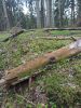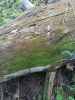 Satrūdējusi kritala mežā, nav dēļi. Iespējams, egle, jauktu koku mežs.