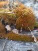 Man pēkšņi radās ideja - vai tur bija nu ļoti mitrs mikroklimats, egle ar melnalksni? Hipotētiski tādas dzeltenas var būt Diachea muscorum. Te bilde ir mazliet līdzīga: https://fr.wikipedia.org/wiki/Fichier:Craterium_muscorum,_Trawscoed,_North_Wales,_Aug_2016_-_Flickr_-_janetgraham84.jpg