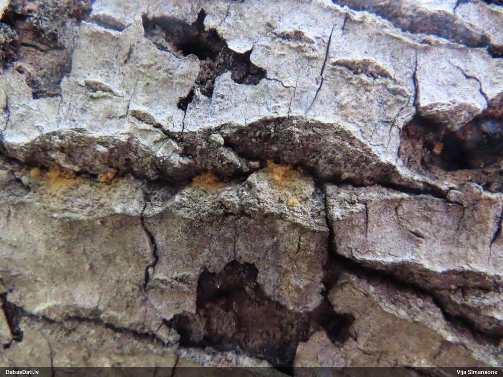 Konkrētā egle vēl joprojām vilka dzīvību, lai gan rētas bija ekstensīvas un noklāja visu stumbru vismaz līdz 2,5m H. Piekrītu, ka aprakstos minētas dzīvu egļu sveķainas rētas, lai gan raksturīgais melnais micēlija tīklojums novērojams arī uz nokaltušiem stumbriem, kamēr vien ir atbilstoši apstākļi tā eksistencei.. Joprojām neesmu atmetis entuziasmu atrast vēl kādu sugas atradni, tuvākajās dienās tiks apsekoti kārtējie biotopi.